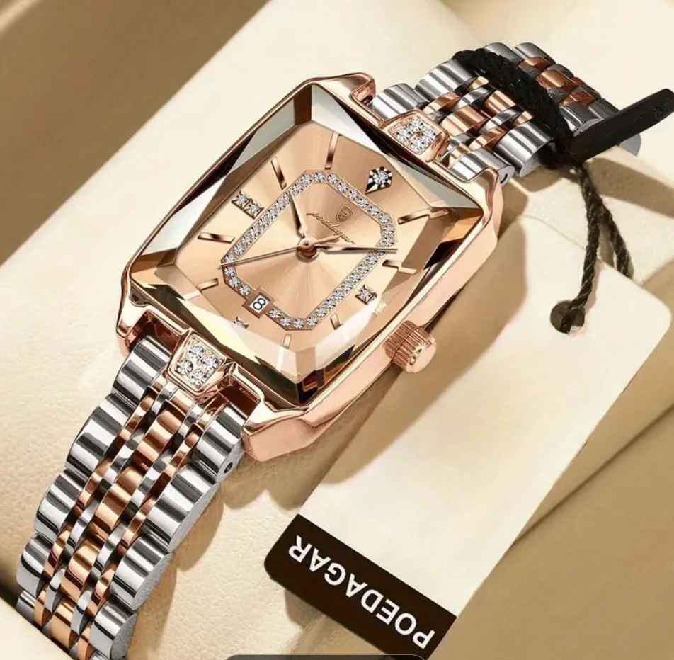 • ساعة نسائية أنيقة من بويداجار بتصميم فاخر ومستطيل.