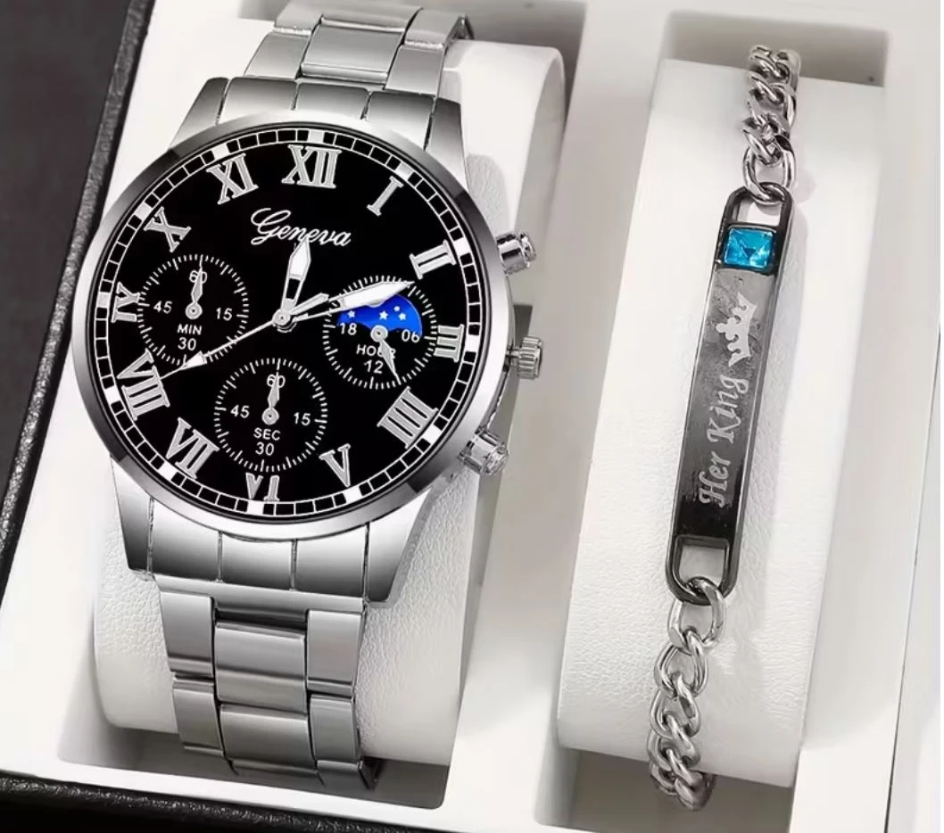 طقم ساعة كوارتز رجالية مع سوار أنيق