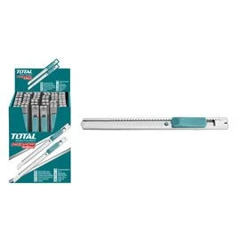 مشرط ستانلس ستيل رفيع توتال يتميز بتصميم أنيق ودقيق مناسب للأعمال التي تحتاج إلى تحكم عالي. مصنوع من ستانلس ستيل مقاوم للصدأ، مع شفرة رفيعة توفر دقة فائقة في القص، مما يجعله مثاليًا للأعمال الدقيقة والحرفية.