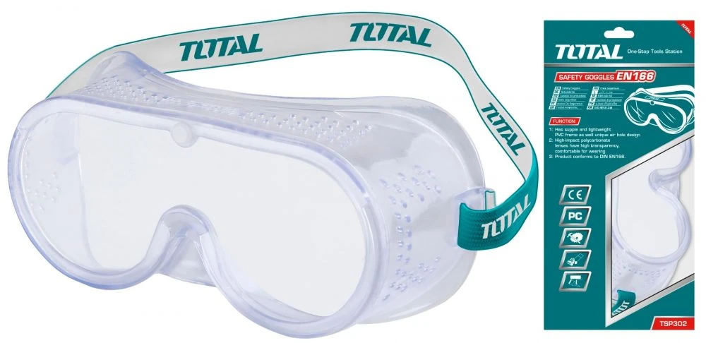 نظارة غبرة شفاف غواصة توتال مصممة لتوفير حماية إضافية للعينين مع تغطية كاملة حول الوجه لمنع دخول الغبار والجزيئات من جميع الاتجاهات. تتميز بإطار متين وخفيف الوزن، وراحة مثالية للارتداء الطويل، ومقاومة للصدمات والخدوش، لتأمين الأمان الكامل أثناء العمل في الورش والمصانع ومواقع البناء.