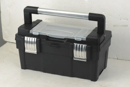 صندوق عدة صغير مع مسكة وفصالات من الألمنيوم الثقيل يوفر حماية فائقة وتنظيم ممتاز للأدوات الأساسية أثناء الاستخدام المنزلي أو الورش الصغيرة.