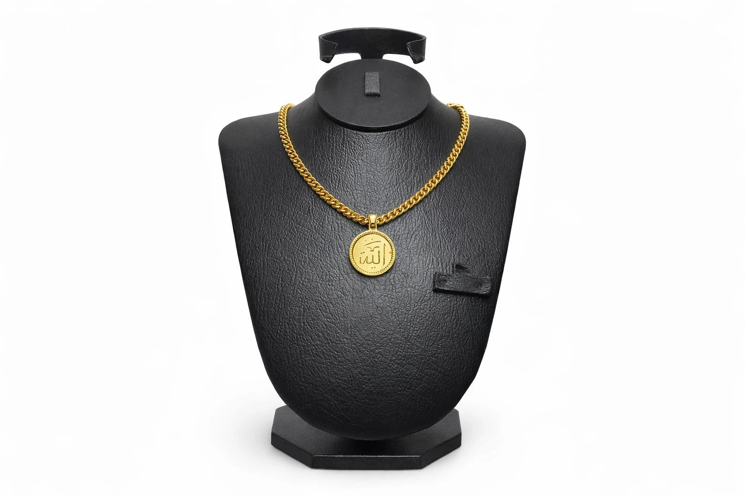 • سنسال أنيق يحمل كلمة «الله» بتصميم راقٍ يجمع بين الجمال الروحاني والفخامة الهادئة، مصنوع من الذهب الروسي عالي الجودة بلمعة تدوم طويلاً.