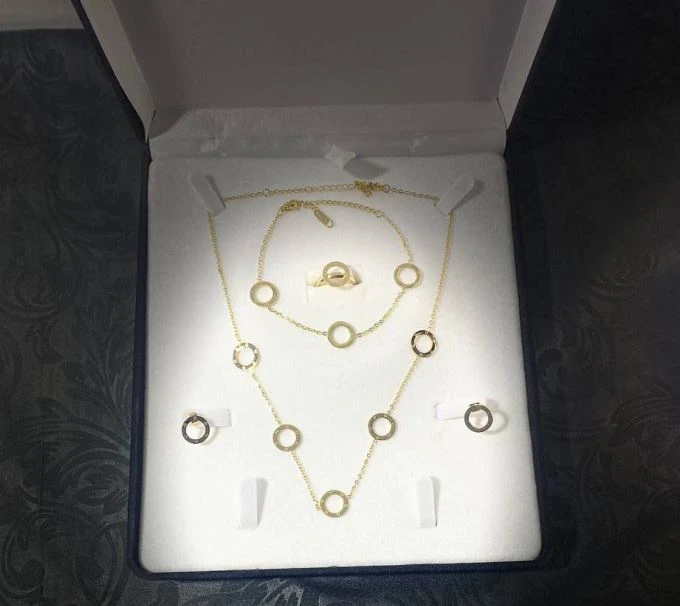 • طقم كارتير من الدهب الروسي بتصميم فاخر مستوحى من السلاسل الكلاسيكية العريضة، يمنحك إطلالة قوية وأنيقة في نفس الوقت.