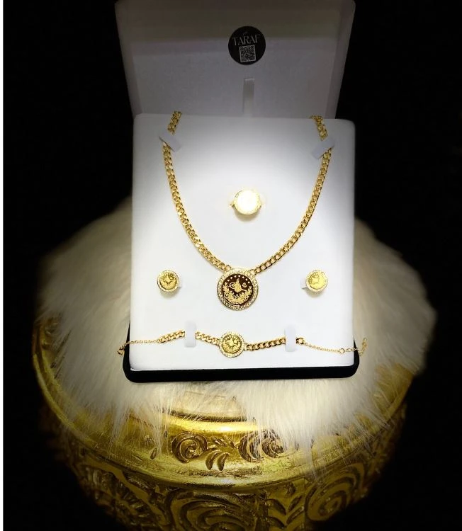 • طقم ليرة رشادي من الدهب الروسي بتصميم كلاسيكي أنيق مستوحى من الليرة الرشادية التراثية، يضفي لمسة فخامة وأصالة على إطلالتك.