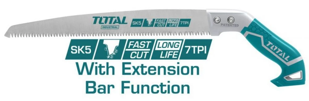 TOTAL 30CM 300MM منشار شجر أداة قوية وفعّالة لتقطيع الأشجار والفروع الكبيرة بدقة وسلاسة. يتميز هذا المنشار بجودة تصنيع عالية توفر الثبات أثناء العمل وتقليل الاهتزاز، مما يسهل التحكم ويجعل القطع أسهل وأسرع. مناسب للبستانيين وأصحاب الورش والمشاريع الكبيرة التي تحتاج إلى أدوات قوية وموثوقة لأعمال تقليم الأشجار والنجارة.