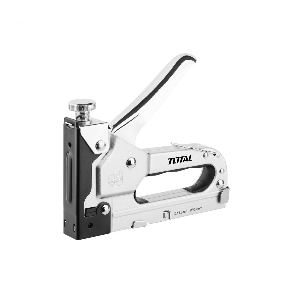 TOTAL 4-14MM مكبس تنجيد أداة قوية واحترافية لتثبيت المواد بدقة في أعمال التنجيد المختلفة. يدعم نطاق 4-14 ملم لتثبيت الكلبسات والمسامير الصغيرة والمتوسطة، مع هيكل متين يوفر أداءً ثابتًا ومتواصلًا، وتصميم مريح يقلل إجهاد اليد أثناء العمل الطويل.