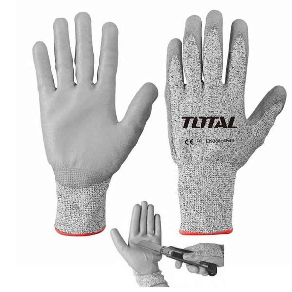 كفوف ضد القطع توتال مصممة لحماية اليدين من الأدوات الحادة والمواد القاسية أثناء العمل في الورش والمصانع. المواد المستخدمة في تصنيع الكفوف توفر مقاومة عالية للقطع والخدوش، مع الحفاظ على مرونة اليد أثناء التعامل مع المعدات والأدوات. توفر الكفوف قبضة قوية تمنح الأمان عند استخدام الأدوات، كما تقلل من خطر الانزلاق والإصابات المحتملة.