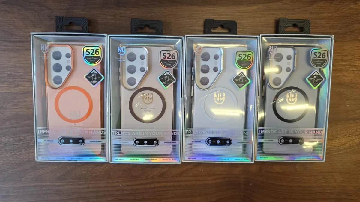 احمِ هاتفك سامسونج جالاكسي S26 المغناطيسي المميز، المزود بحلقة تثبيت مدمجة مبتكرة وتوافق مع تقنية MagSafe. يجمع هذا الغطاء متعدد الاستخدامات بين الأناقة والعملية والحماية الفائقة.