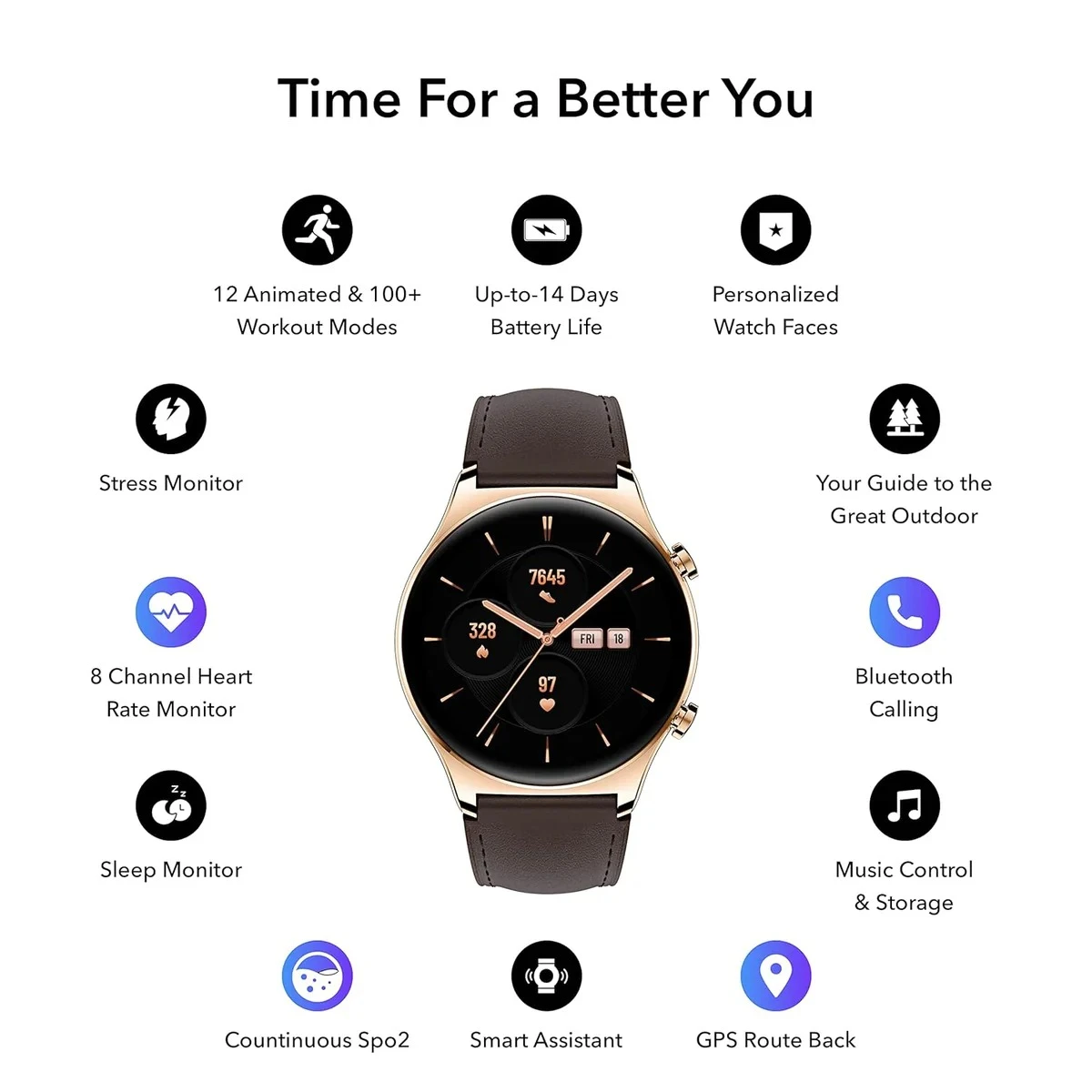 تُغير ساعة HONOR Watch GS 3 الذكية قواعد اللعبة، حيث تتميز بشاشة AMOLED تعمل باللمس مقاس 1.43 بوصة، وتتبع معدل ضربات القلب والنوم، ومراقبة الأكسجين في الدم، ونظام تحديد المواقع العالمي (GPS) المزدوج. مع اتصال Bluetooth وعمر بطارية يصل إلى 14 يومًا، هذه الساعة مثالي لأنماط الحياة النشطة مع أكثر من 100 وضع رياضي متنوع.