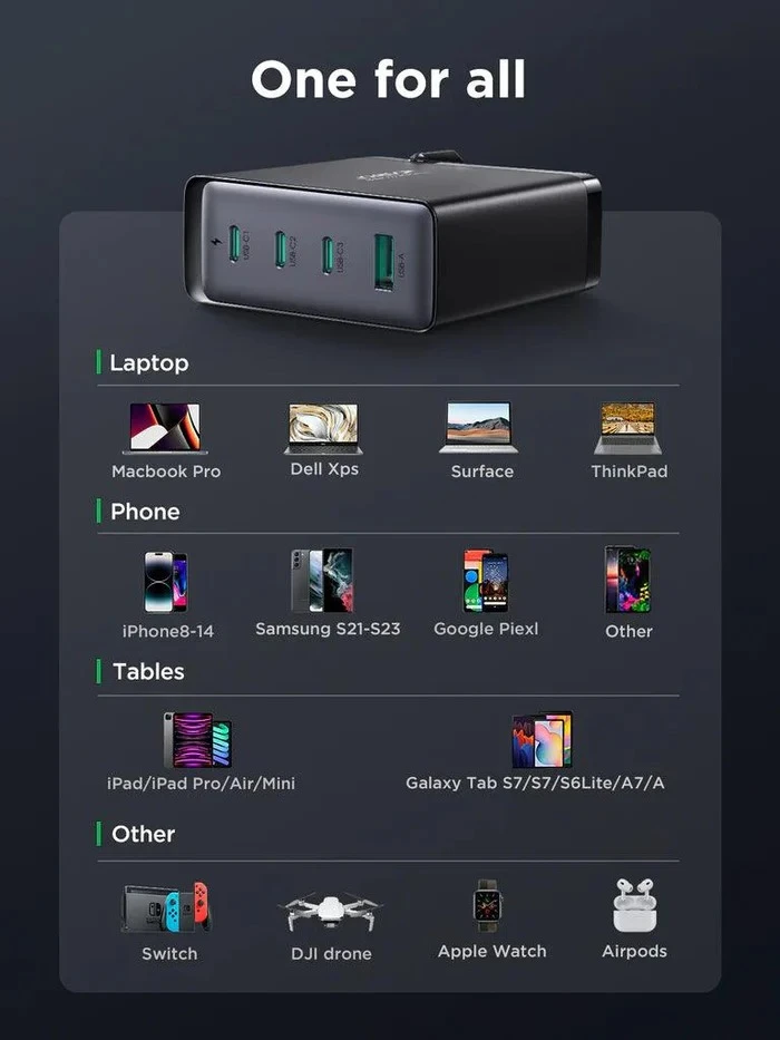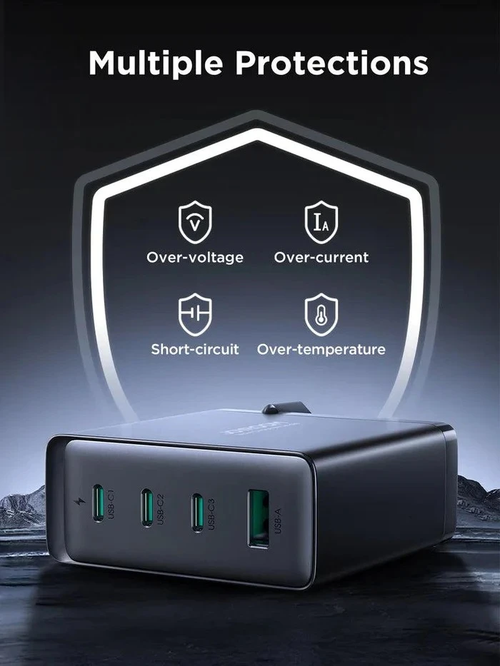 اشحن 4 أجهزة في وقت واحد: يوفر شاحن واحد الطاقة لما يصل إلى 4 أجهزة في وقت واحد، مما يجعله مثاليًا للاستخدامات المتعددة.